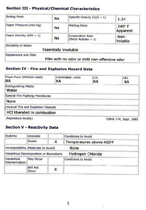 Clear Blue Plastic MSDS Page 2
